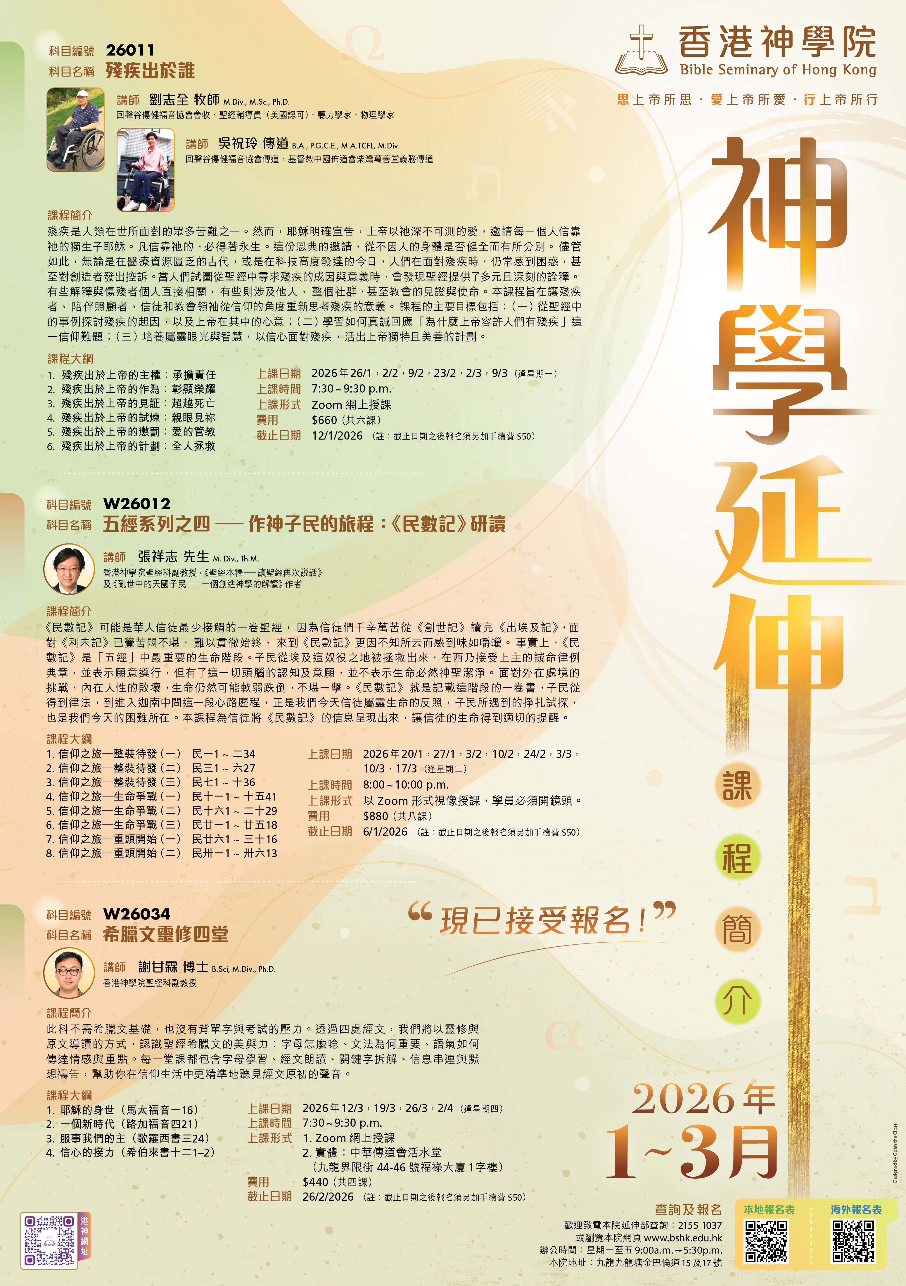 2026年1-3月神學延伸課程