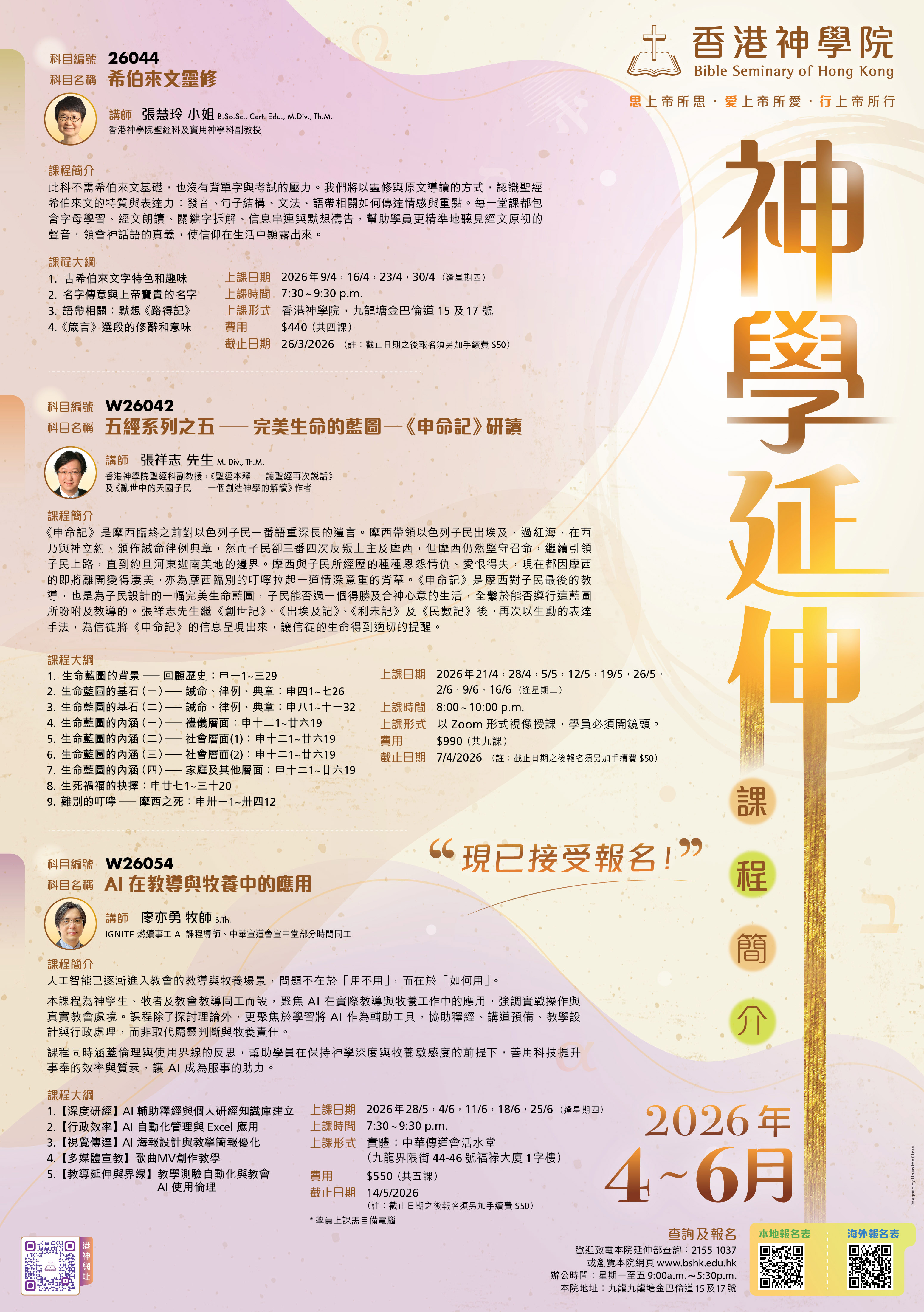 2026年4-6月神學延伸課程