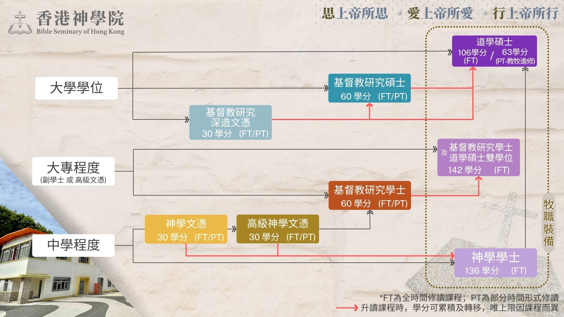 (本院有設立助學金,供有經濟困難而修讀全時間牧職課程的同學申請。)