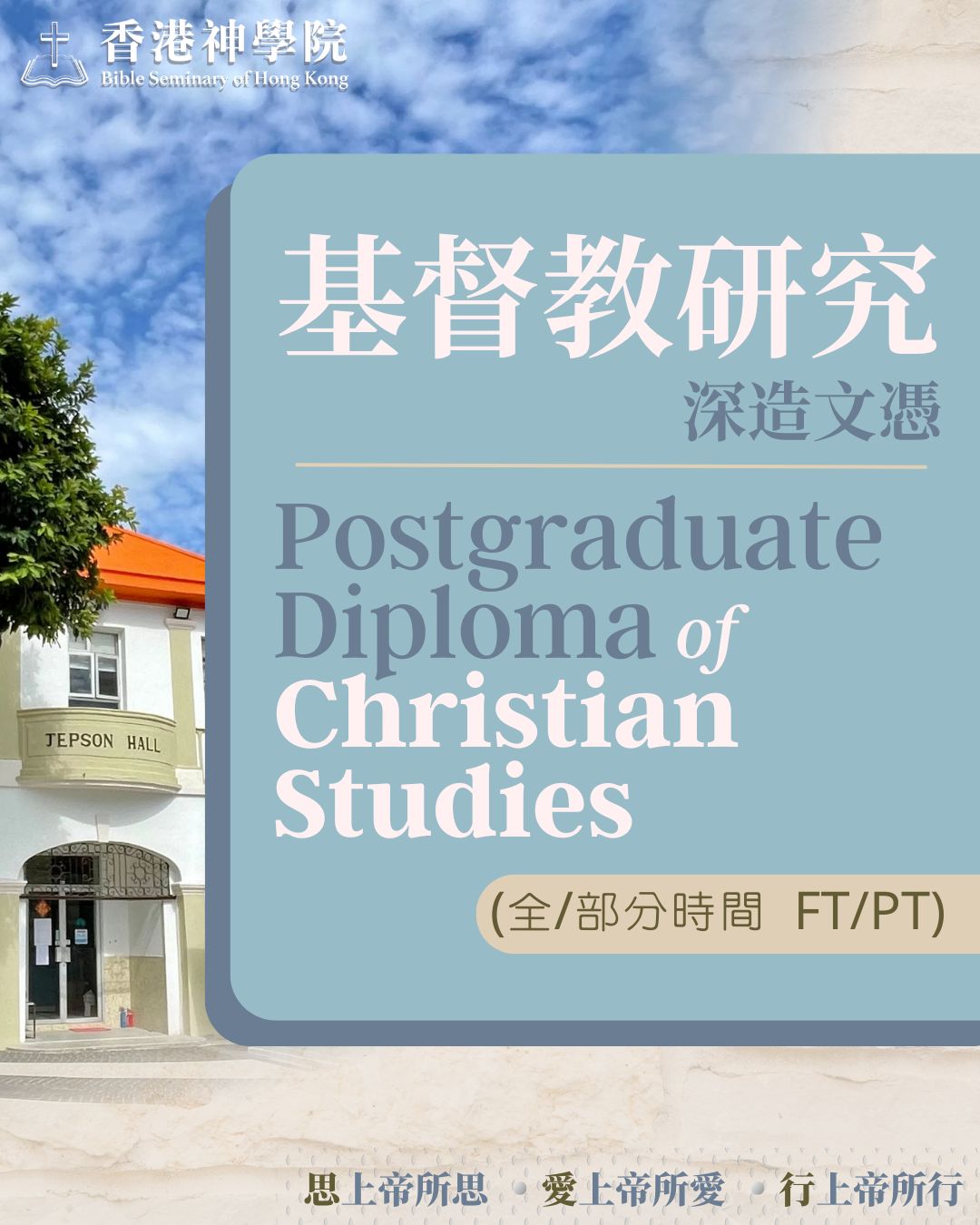 海外生:基督教研究深造文憑 網上報名
